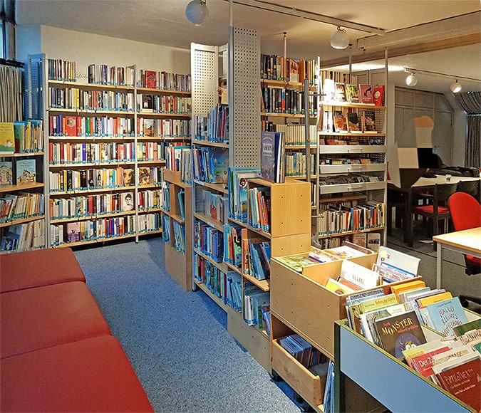 Mit etwa 2.300 Büchern und Hörbüchern bietet die Bücherei im Kleinen Saal des Gemeindehauses eine feine Auswahl an Kinderbüchern und Krimis, Romanen und Biographien und ausgewählten Sachbüchern zu Geschichte und Religion.
